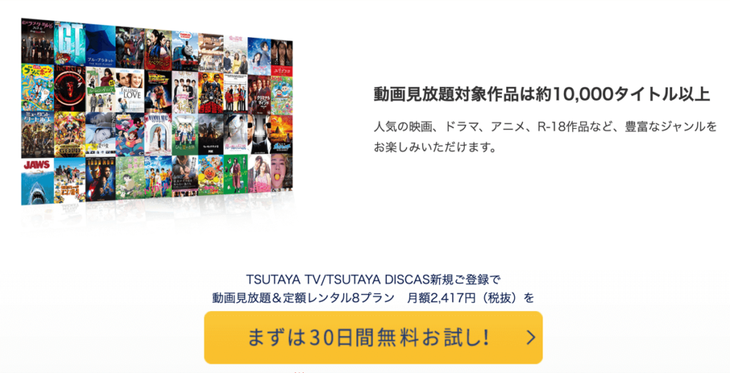 TSUTAYA TV / TSUTAYA DISCASも30日までの無料お試しサービスが。
