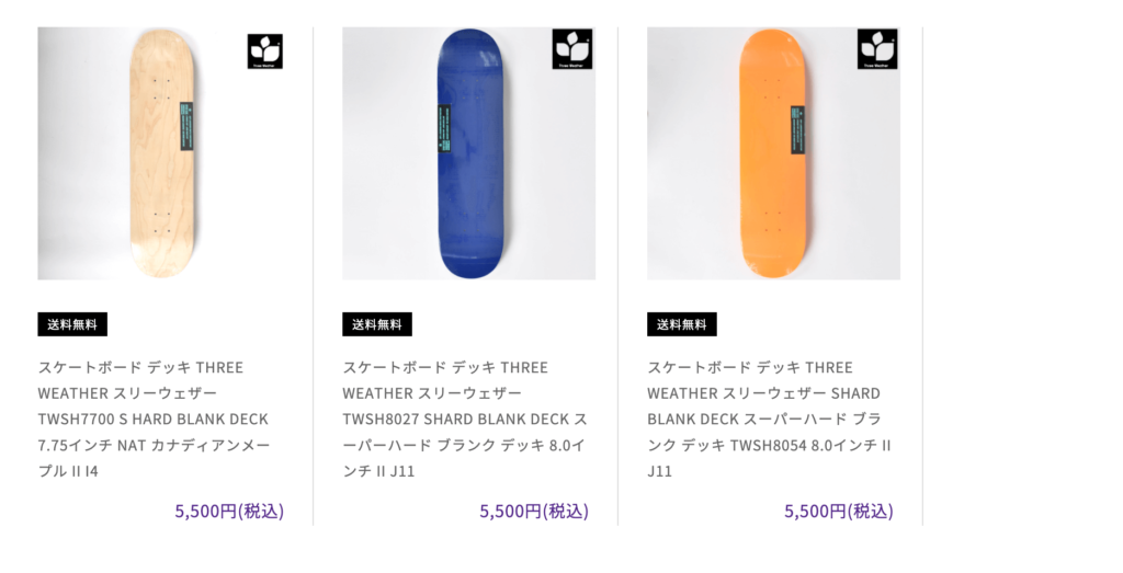 ムラサキスポーツは、THREE WEATHER (スリーウェザー)というブランドのブランクデッキを扱っています。